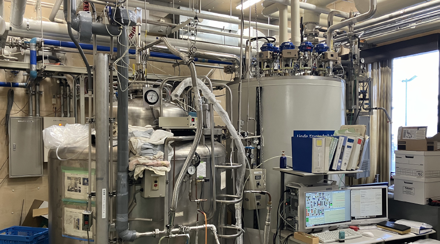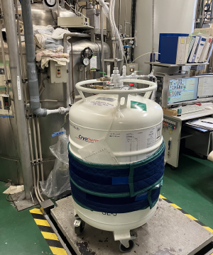 電気通信大学では1960年代に最初のヘリウム液化機が導入され、実験室での液体ヘリウムを用いた低温実験が開始されました。 1972年より学内の共通設備「低温室」として液体ヘリウムの供給が開始され、以降幾度かの設備の更新が行われ、今日に至るまで理工学研究における重要なインフラ設備として、学内外に向けた液体ヘリウムの供給を続けています。 また液体窒素の供給もあわせて実施しています。以下に概要を紹介します。